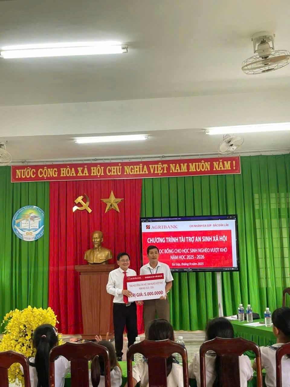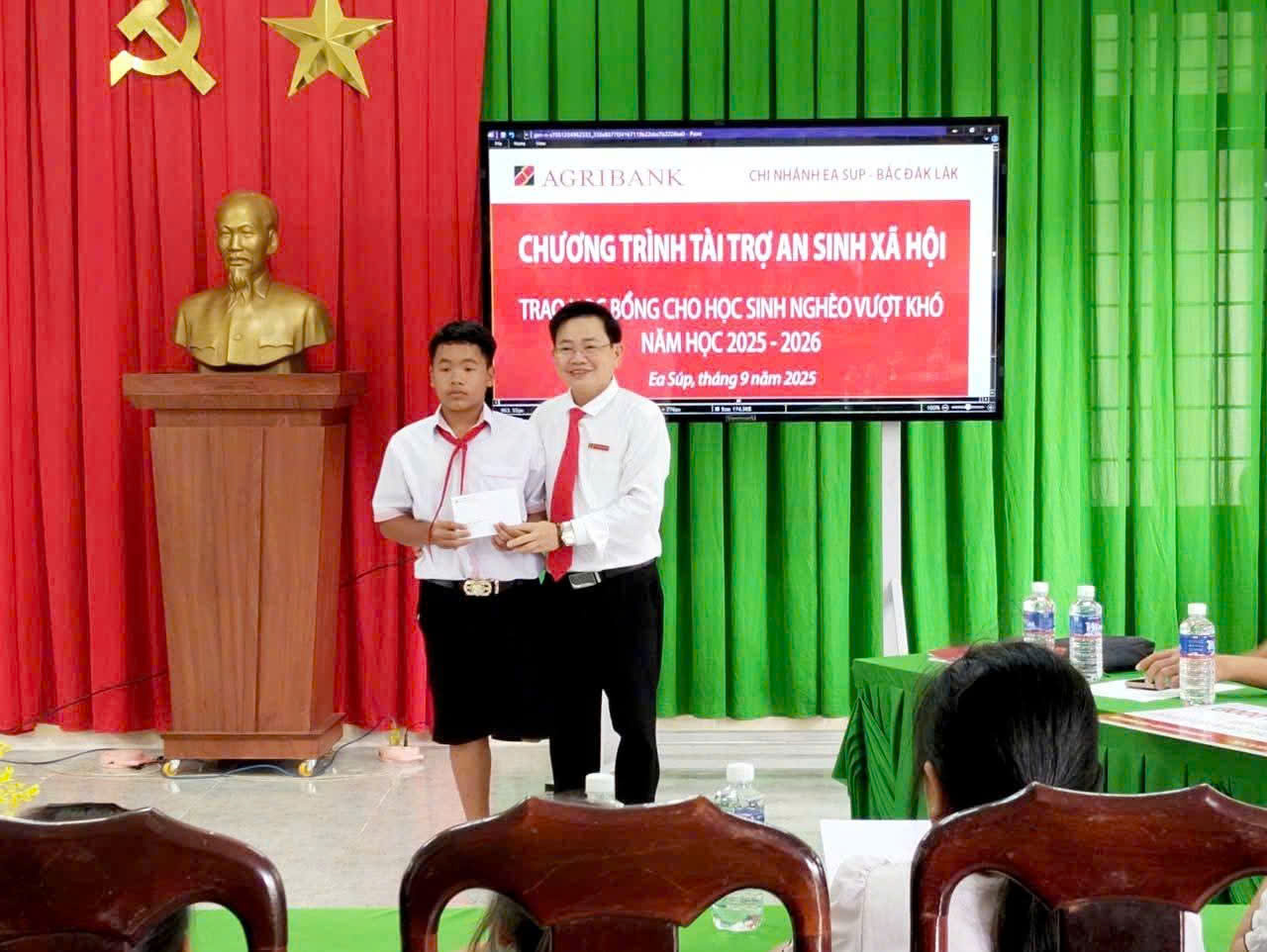 Vào chiều ngày 26/9/2025, Agribank Chi nhánh Ea Súp đã long trọng tổ chức buổi lễ trao học bổng tại Trường THCS Bế Văn Đàn, xã Ea Rốk, tỉnh Đắk Lắk.