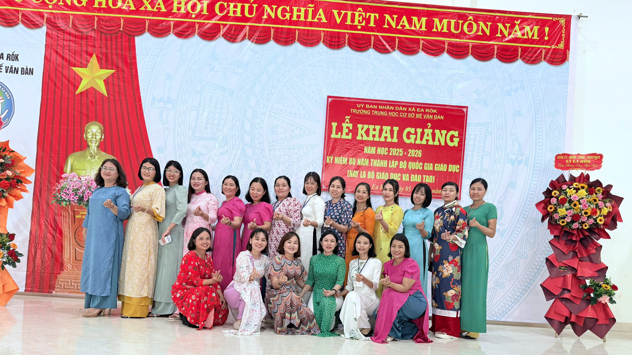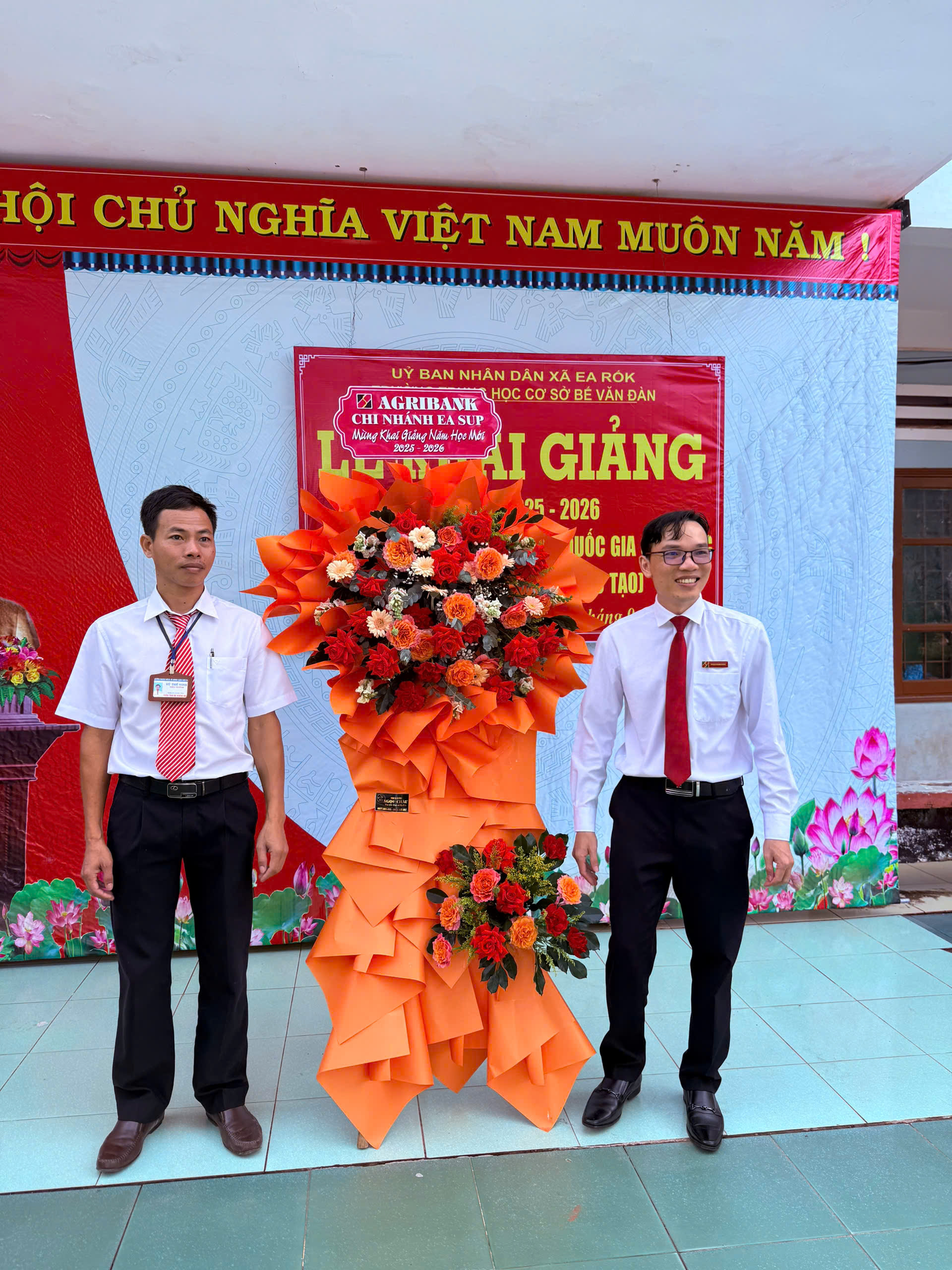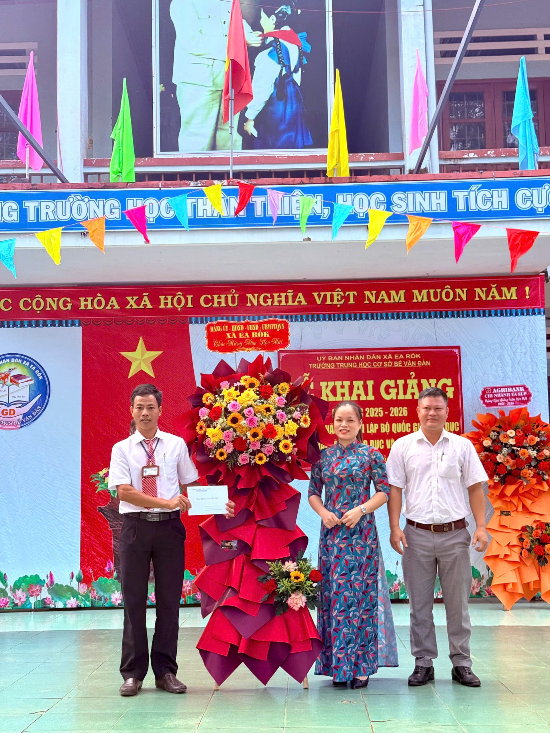 Buổi lễ vinh dự đón tiếp các vị đại biểu, bao gồm Bà Lý Thị Hơn, Phó Chủ tịch HĐND xã Ea Rốk; Các ông bà đại diện cho Đảng ủy – HĐND – UBND – UBMTTQ Việt Nam xã, Đại diện Hội Cha mẹ học sinh trường THCS Bế Văn Đàn Thầy Vũ Thế Vinh – Bí thư chi bộ, Hiệu trưởng nhà trường.